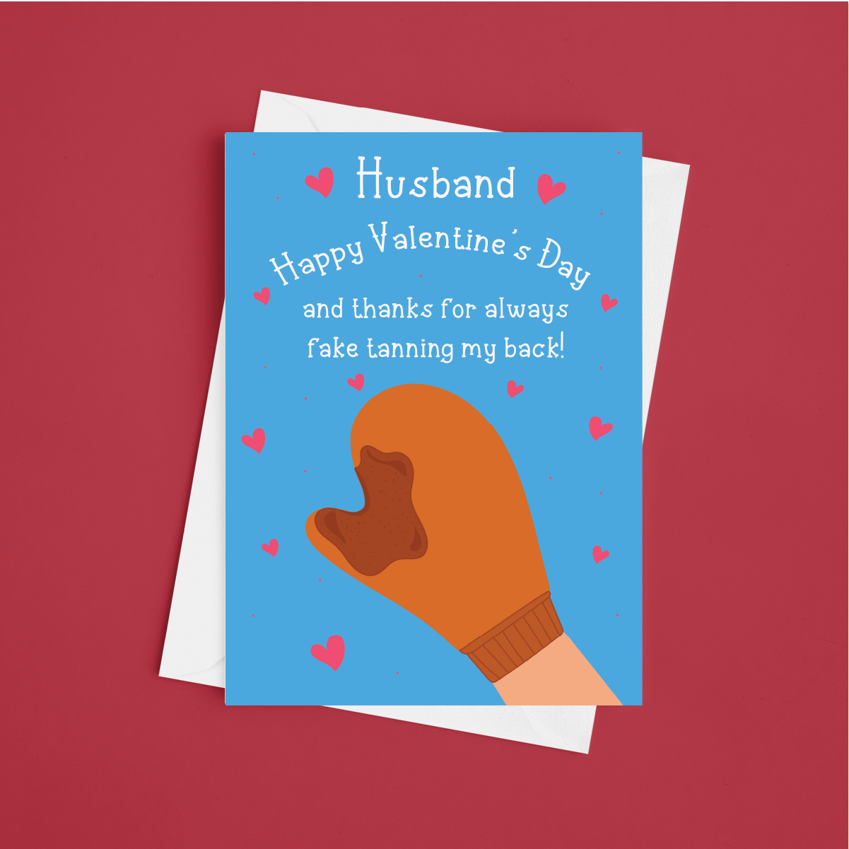Thanks For Fake Tanning My Back Husband - A5 Happy Valentine's Day Card (Blank)